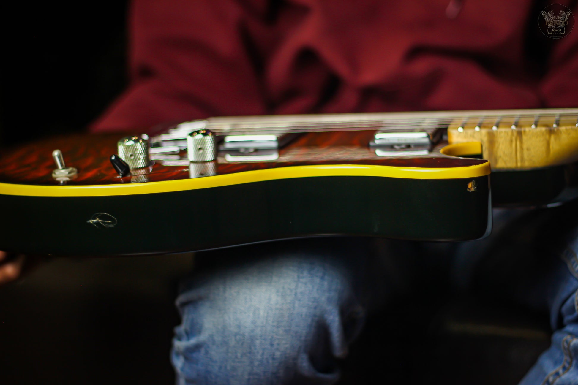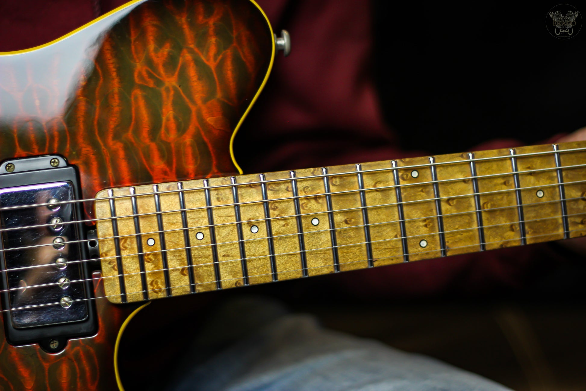 Chambered Basswood with bookmatched quilted maple top and mahogany Tone Block Body.