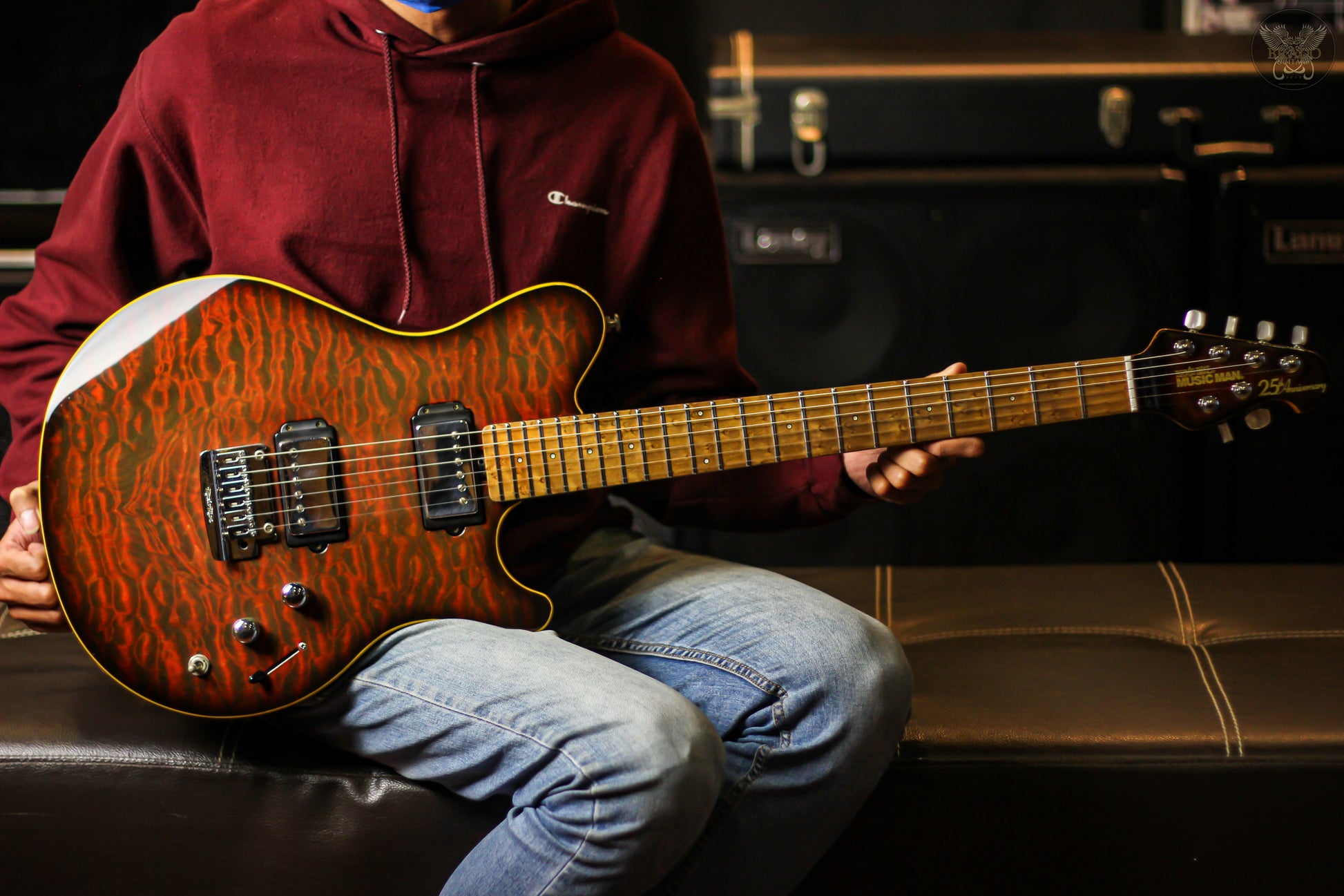 2009 ERNIE BALL MUSIC MAN 25TH ANNIVERSARY VENETIAN REDBURST w EBMM MOLDED HARDCASE MADE IN USA (USED)