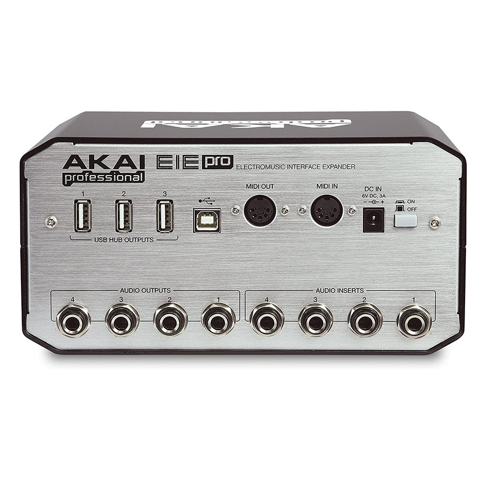 The EIE Pro sends and receives four audio channels on a single USB cable for simple, universal interface to a computer. The three additional USB ports allow the EIE Pro to function as a hub as well, bridging other MIDI controllers and hard-drives to the computer. The EIE Pro features traditional MIDI In and Out jacks for playing and controlling software with keyboard and pad controllers, workstations, and other MIDI-compatible instruments.