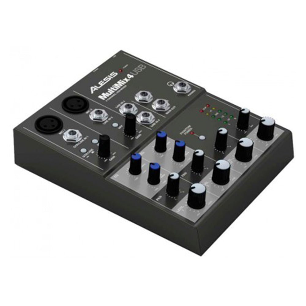 The Alesis MultiMix 4 USB Mixer is a four-channel desktop mixer with a USB digital audio interface built-in. This compact mixer is perfect for using in basic computer-recording setups, video editing and production studios, and portable podcasting setups because it outputs not only line-level analogue audio, but also stereo 16-bit, 44.1 kHz digital audio over USB for low-noise, easy computer connection.