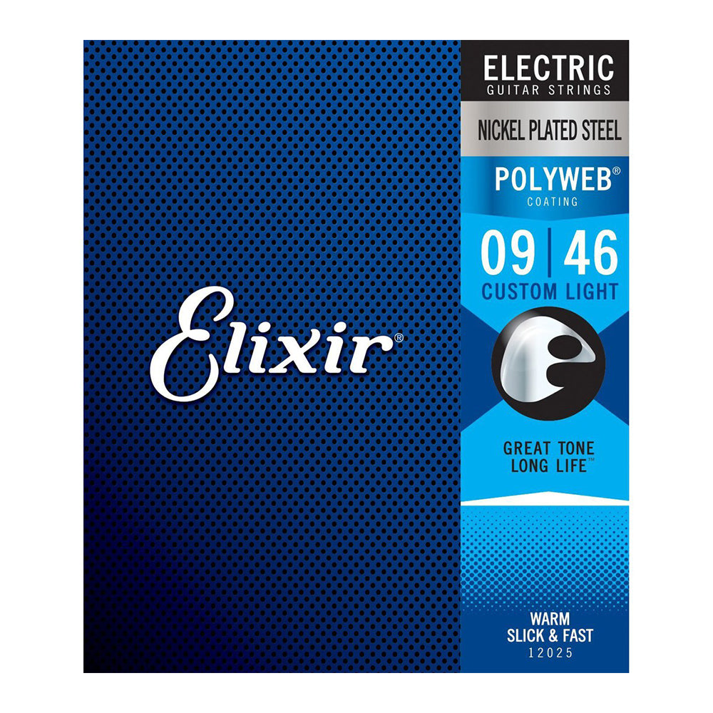 ELIXIR 12025 09/46 CUSTOM LIGHT POLYWEB COATING NICKEL PLATED STEEL ELECTRIC GUITAR STRING
