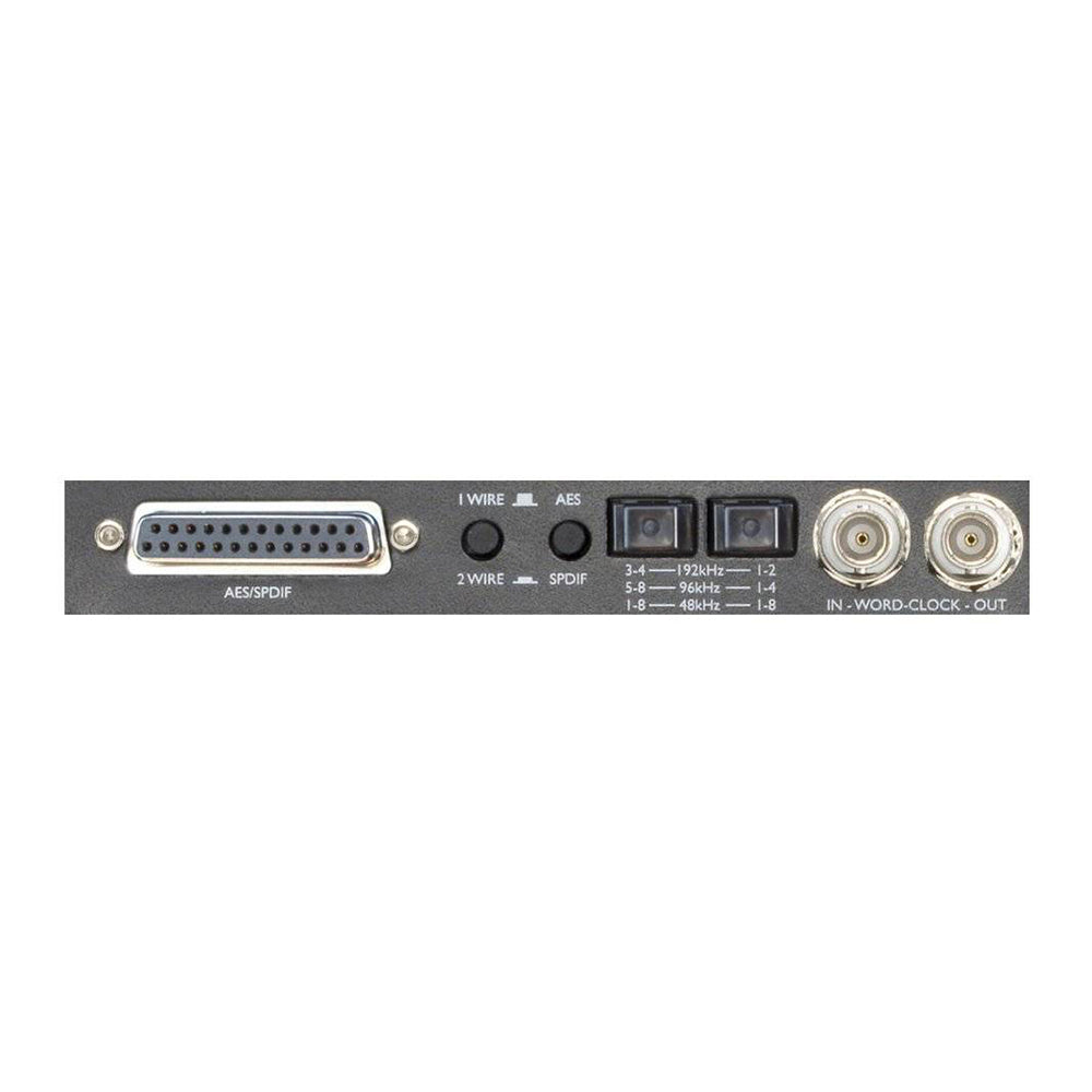 Digital formats include an eight-channel single/dual wire AES/EBU and S/PDIF output, as well as an eight-channel ADAT lightpipe (SMUX/SMUX2) output. Word clock i/o is provided via dedicated BNC connectors.
