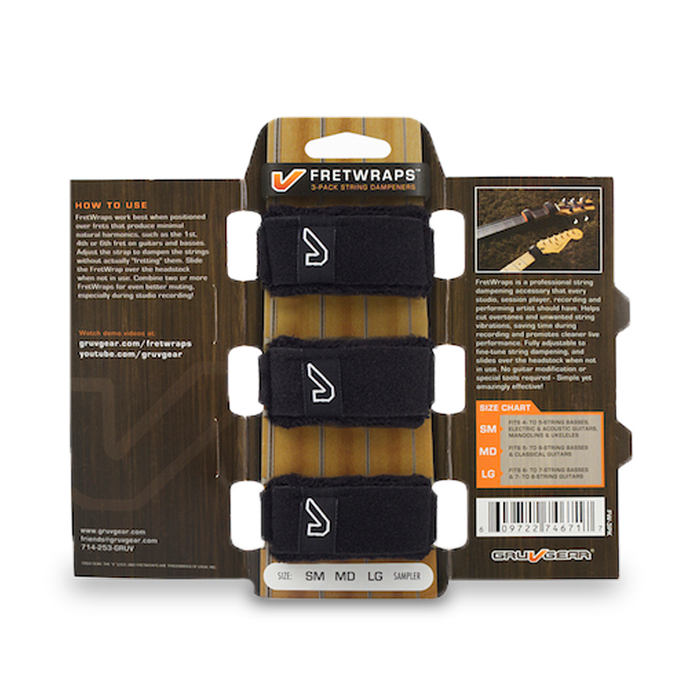 Finally, a professional string dampener / muting accessory that every studio, session player, and tapping aficionado should have! Slide on a FretWrap to effectively cut overtones and sympathetic resonance during recording, live performance, two-hand tapping, or any creative situation where you need that extra muting hand for cleaner takes without the unwanted string noise or ringing.