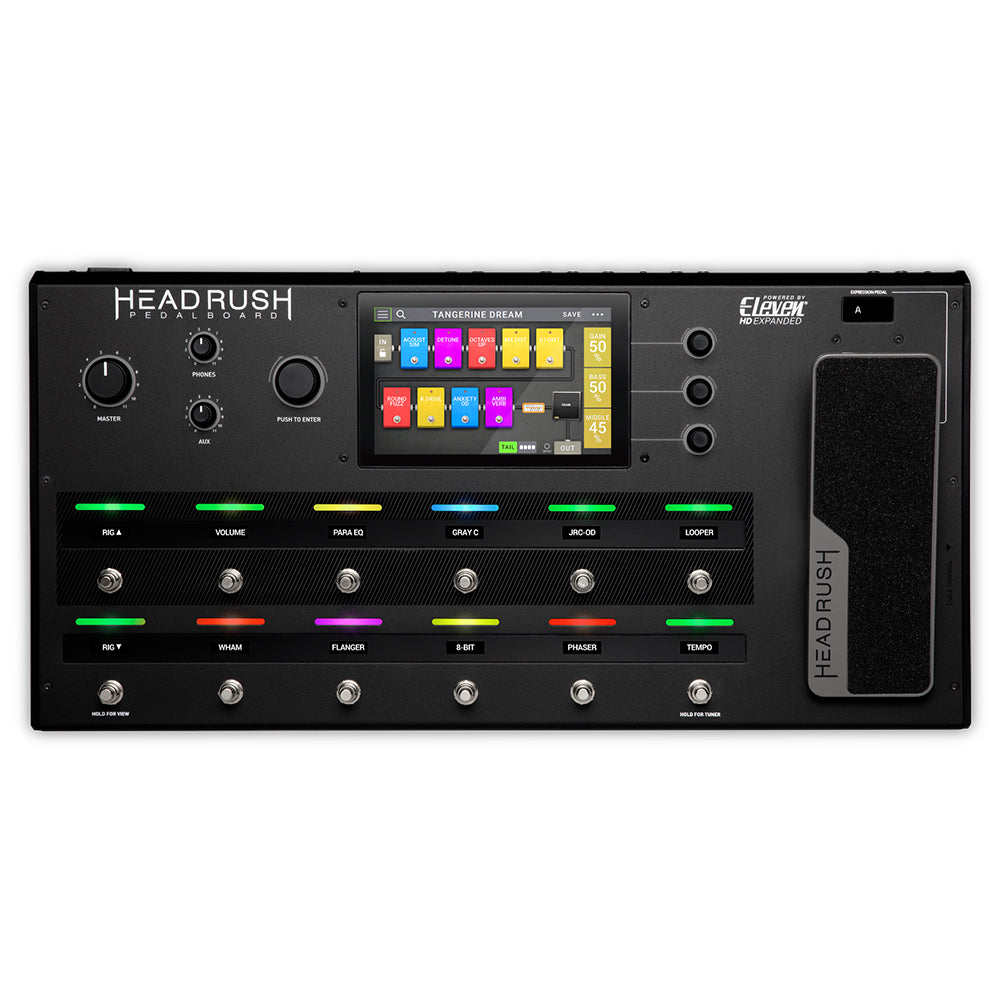 Featuring a powerful quad-core processor and exclusive Eleven® HD Expanded™ DSP software, the HeadRush Pedalboard® delivers the most versatile, realistic-sounding and responsive amplifier, cabinet, microphone and FX models ever found in a road-ready floorboard guitar FX processor. The high resolution and ultra-responsive 7-inch display enable you to touch, swipe and drag-and-drop to instantly create and edit your rigs in an unprecedentedly realistic and intuitive way.