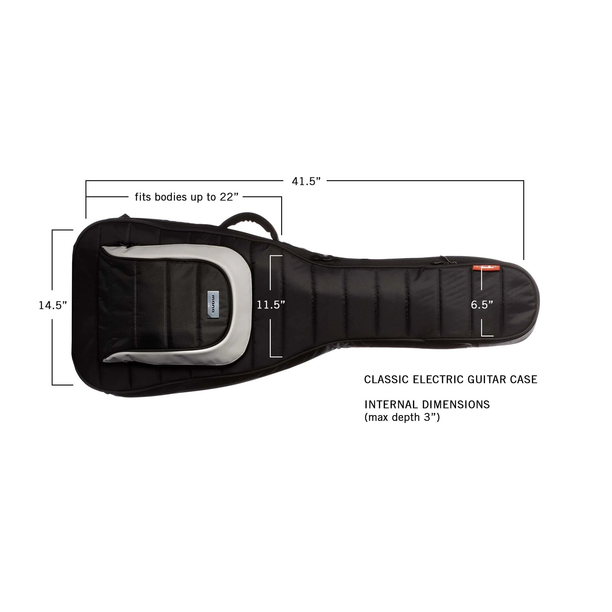 These measurements represent the inner capacity of the case. If you are unsure about the fit for your guitar, make sure it does not exceed any of the maximum dimensions shown just to be safe. This case is designed to fit standard body electric guitars including Fenders like Teles and Strats, Gibsons like Les Pauls and SGs, ESP and many others.
