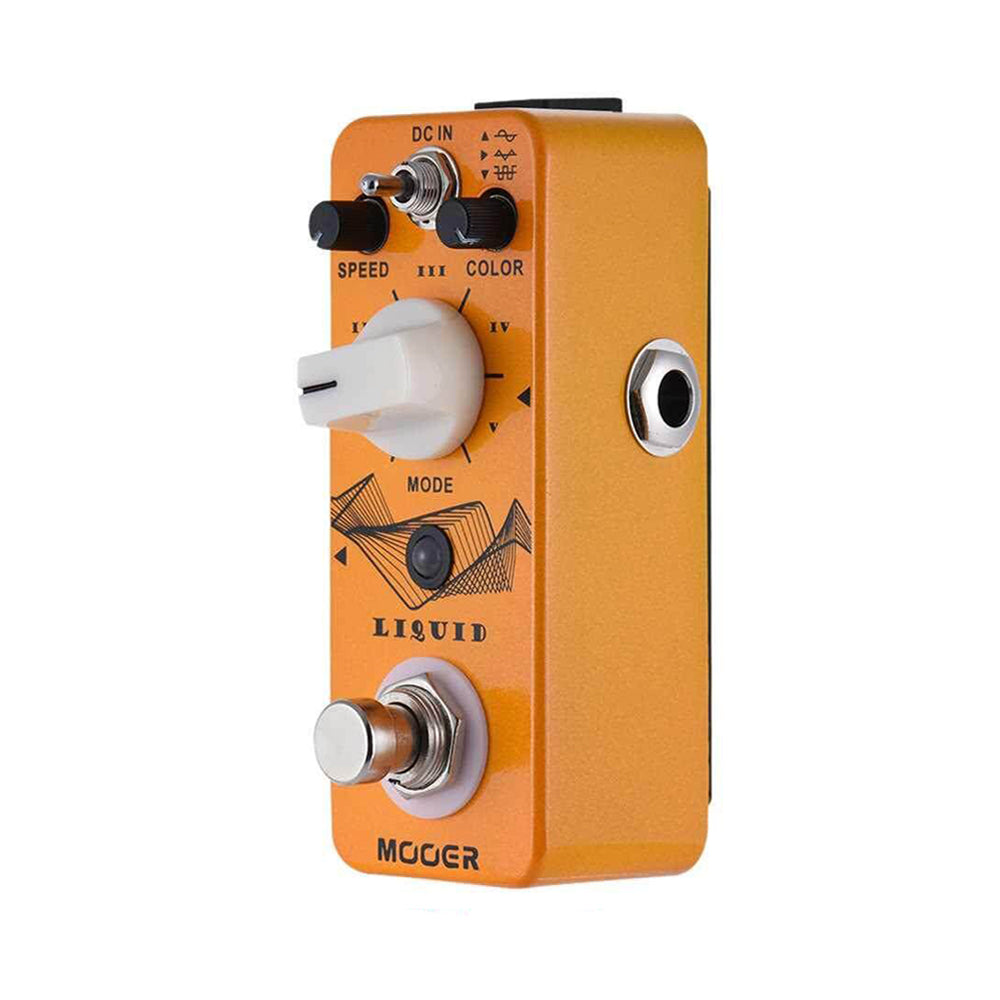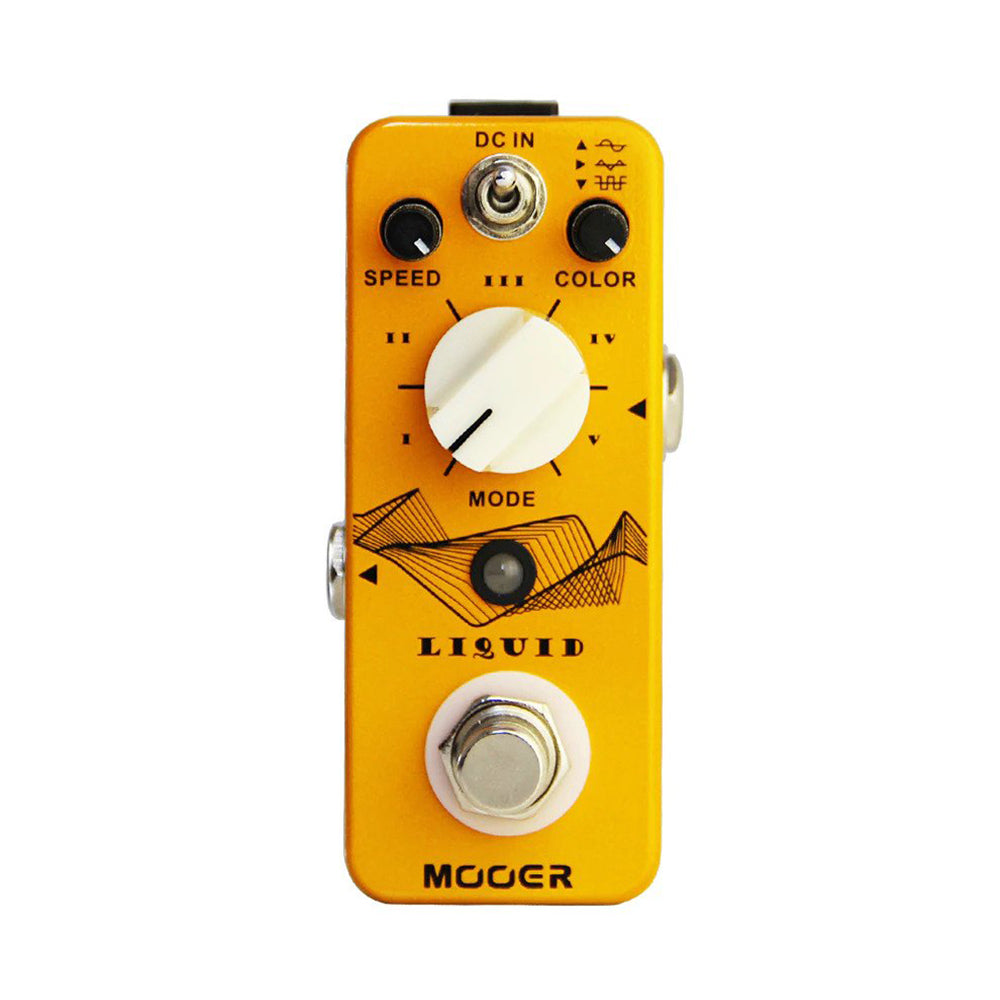 The MOOER "Liquid" is a pocket sized Digital Phase pedal crammed full of cool features. The large control knob allows you to choose from 5 very different Phasers which range from subtle vintage phase to outright wacky and extreme modulation.