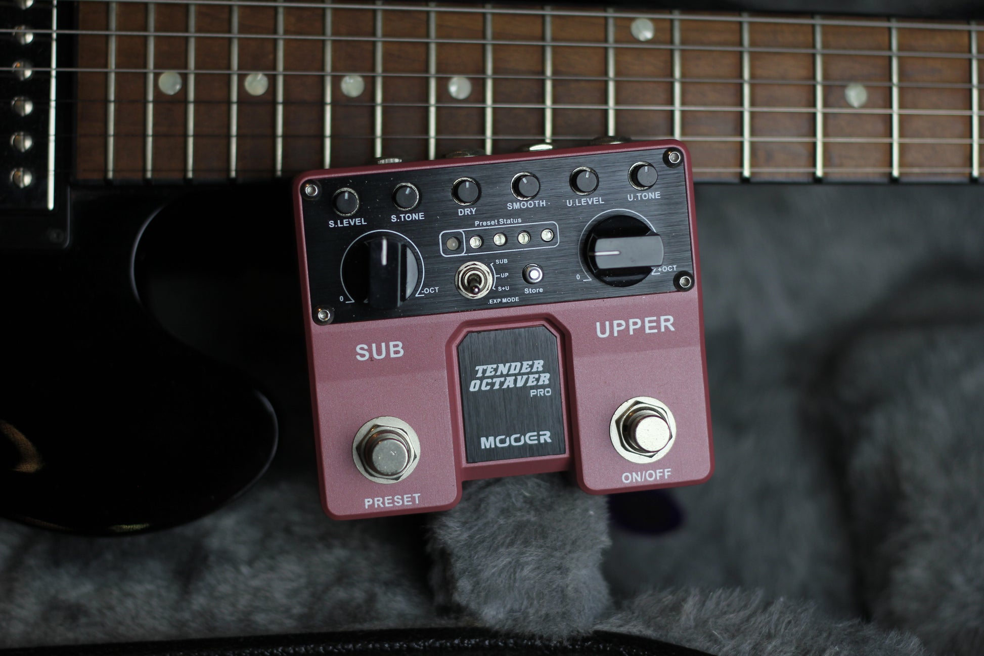 The Pitch controls are infinitely adjustable between unison and +1/-1 octave making it possible to create all kinds of interesting harmonies and special effects. Connecting a standard expression pedal to the "Tender Octaver Pro" expands on this and opens up the possibility of real time pitch shifting.