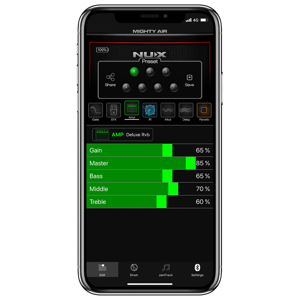 NUX Mighty Air is a wireless stereo modeling amplifier with Bluetooth connectivity and a dedicated APP to enhance your tone from your mobile device.