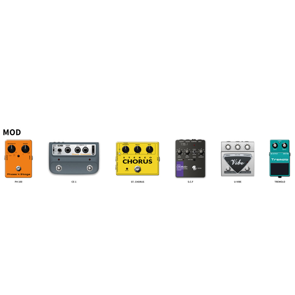 PH 100, CE-1, ST Chorus, SCF, U-Vibe, Tremolo