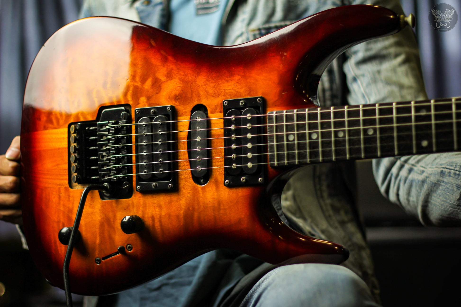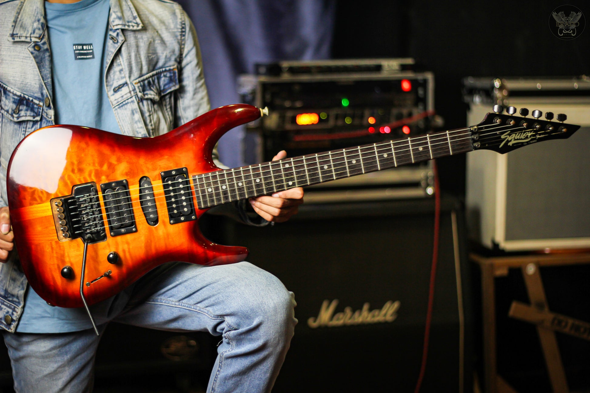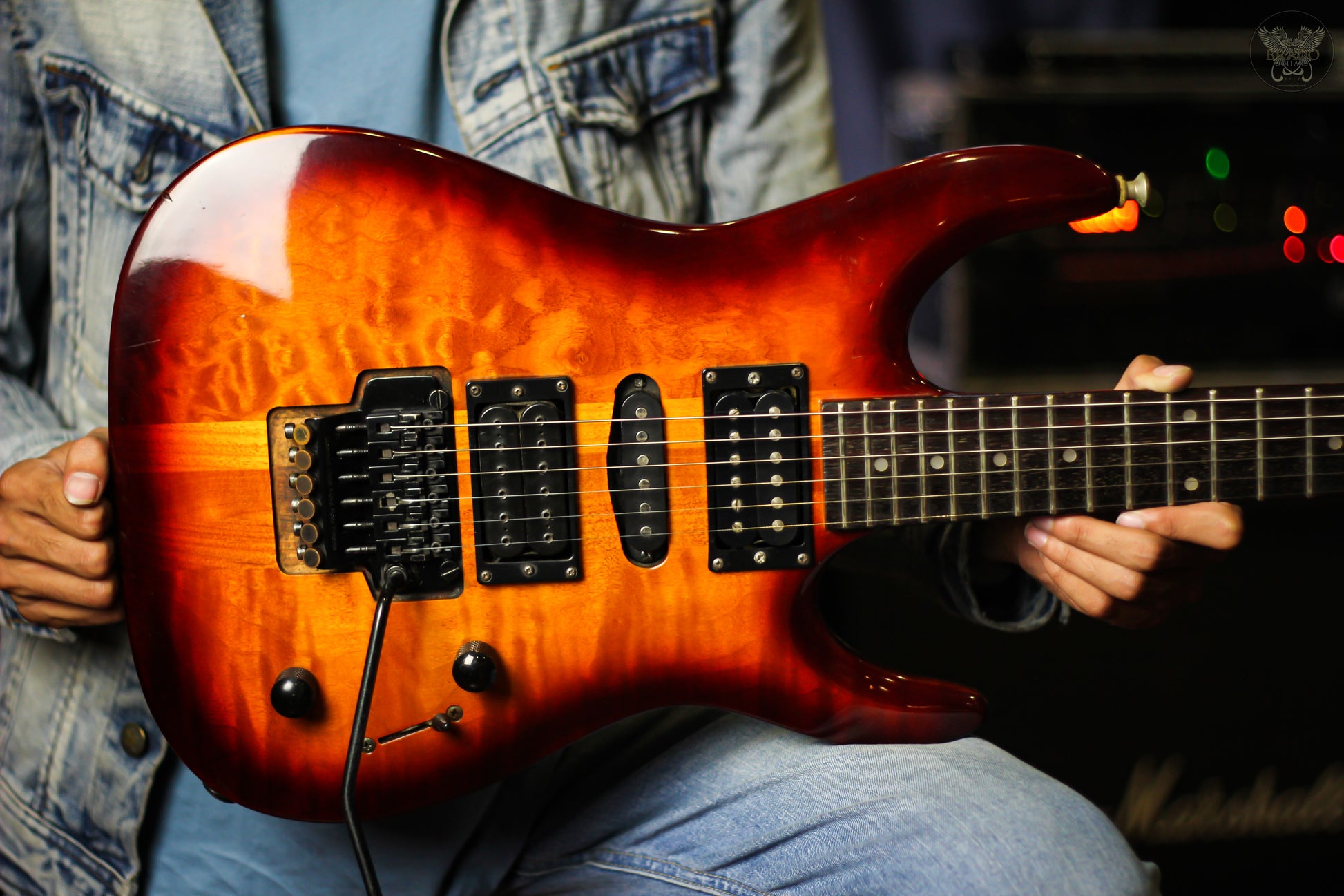 **RARE** 1990 SQUIER H.M. V ANTIQUE BURST w ORIGINAL SQUIER HARDCASE MADE IN KOREA (USED)