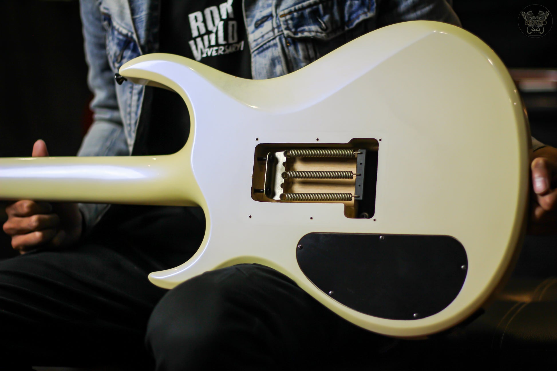** Please note that the guitar doesn't have any burst finish, yellowish area are the shades of lighting due to pearl white finish - refer last photo